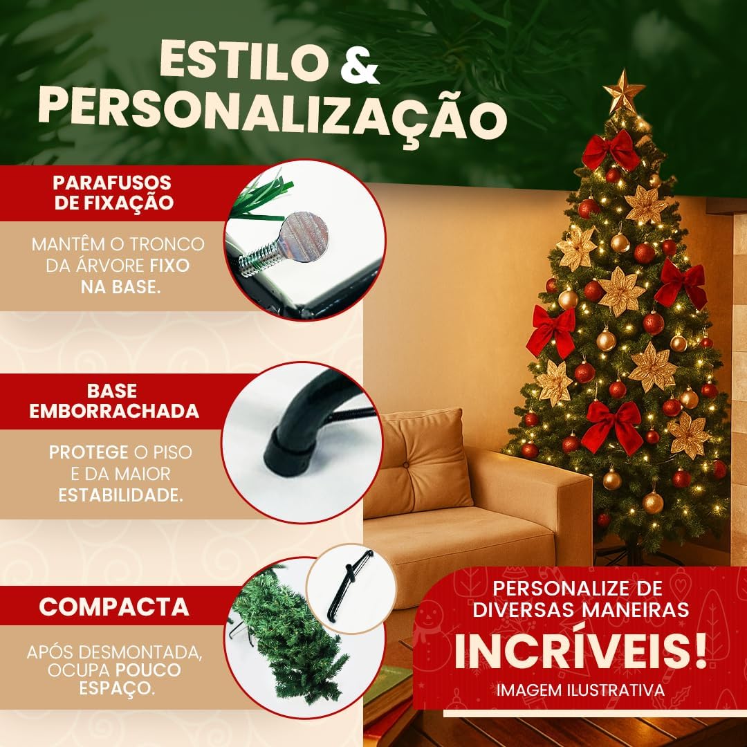 Descubra a Árvore de Natal Luxo Pinheiro Super Premium® – cheia, realista, elegante e com 1,80m de altura. Monte um Natal inesquecível com estilo e durabilidade.